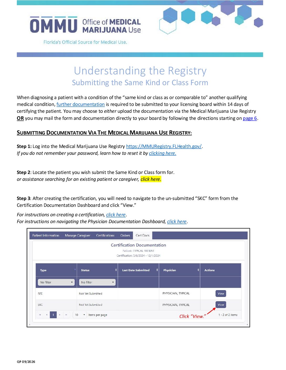 The required documentation can be submitted through the Medical Marijuana Use Registry at the time of certifying a patient, or by mail.